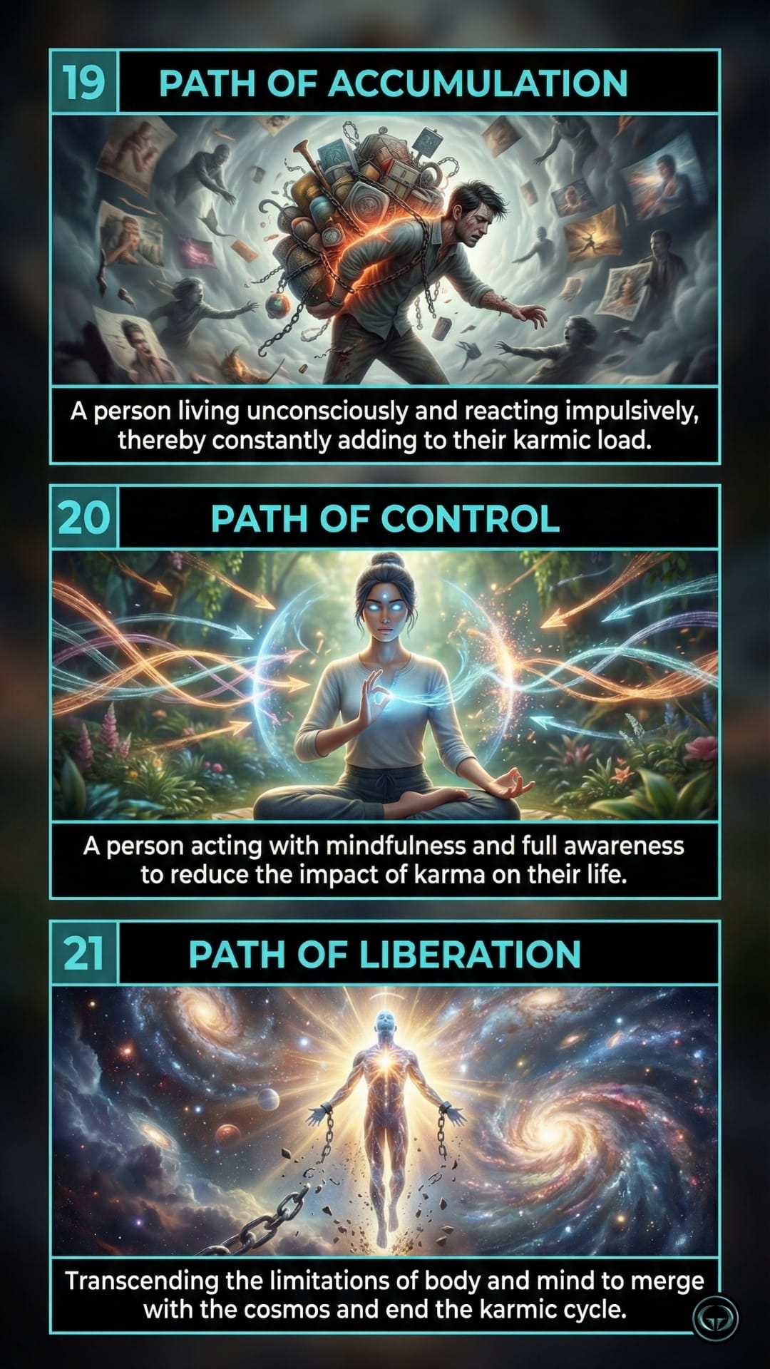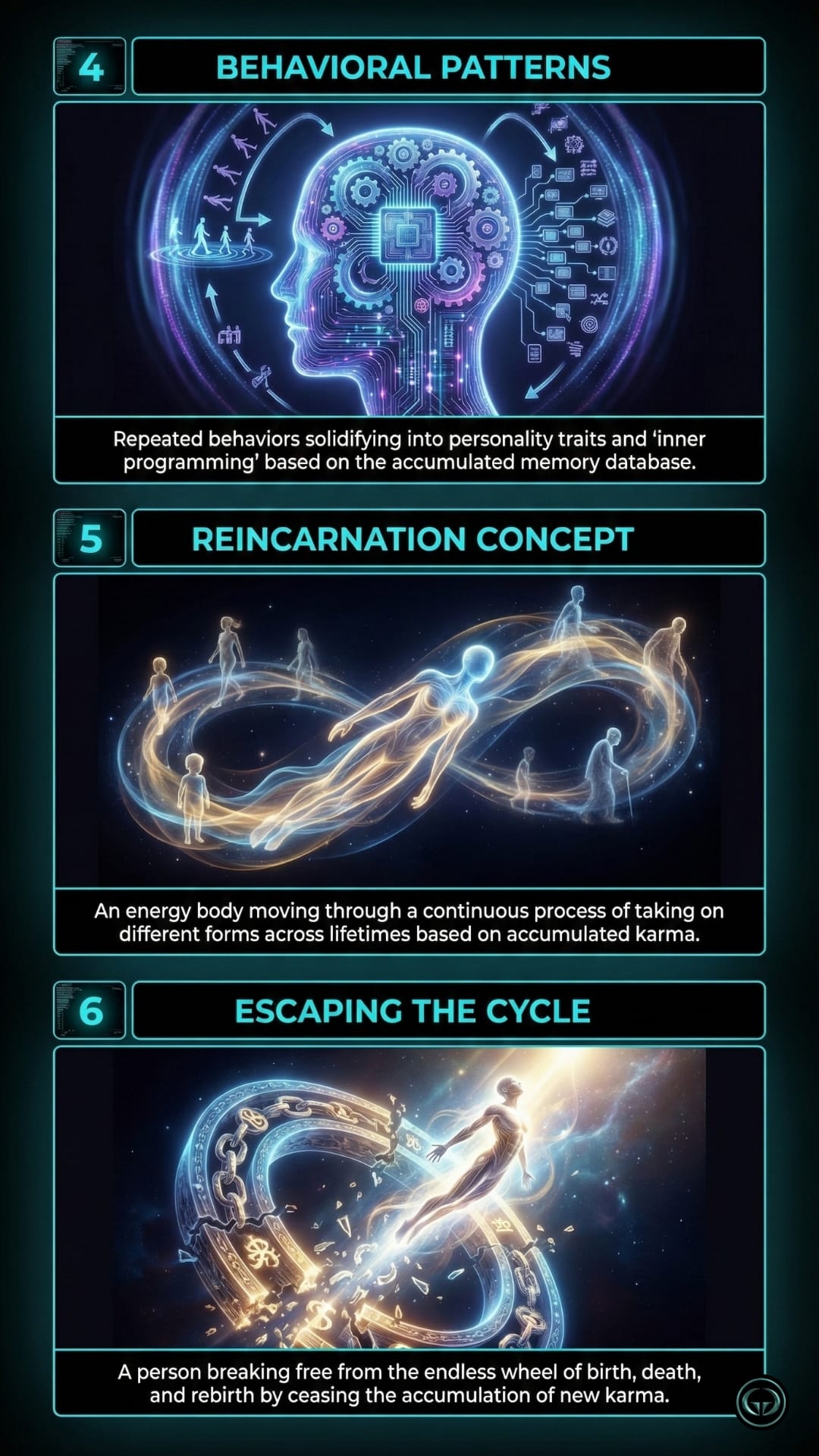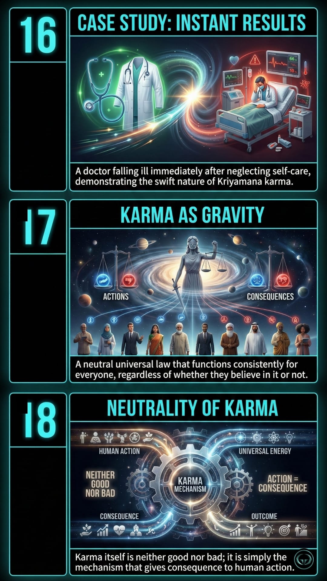 Karma isn't a punishment; it's a mechanism of action. Learn to break the cycle of unconscious patterns. See the visual engineering of the human soul inside.