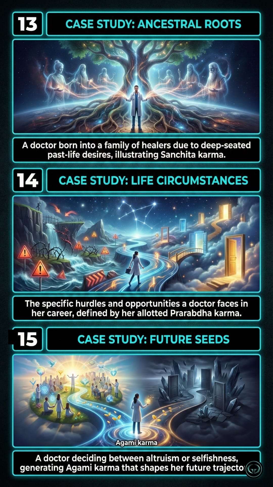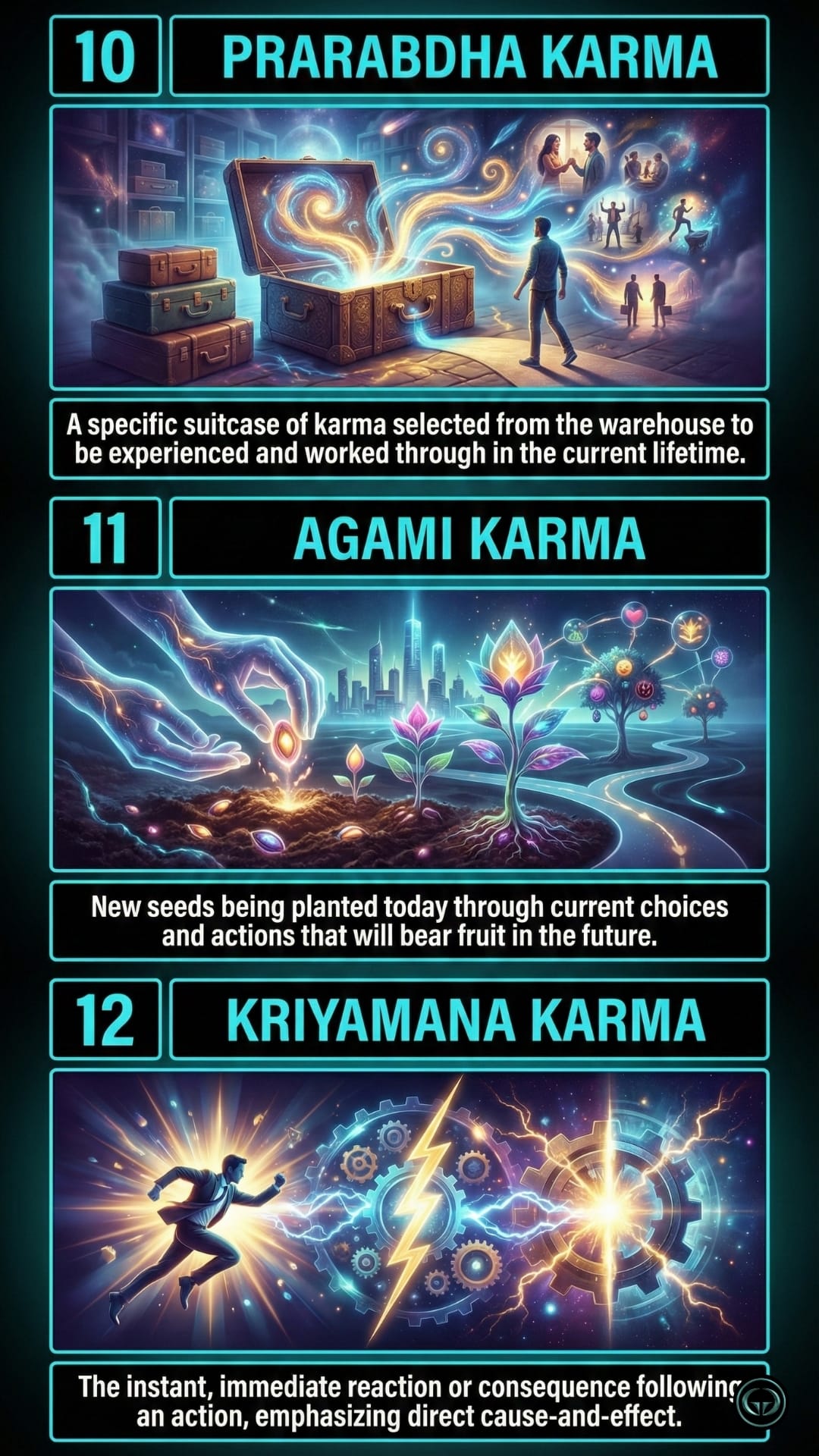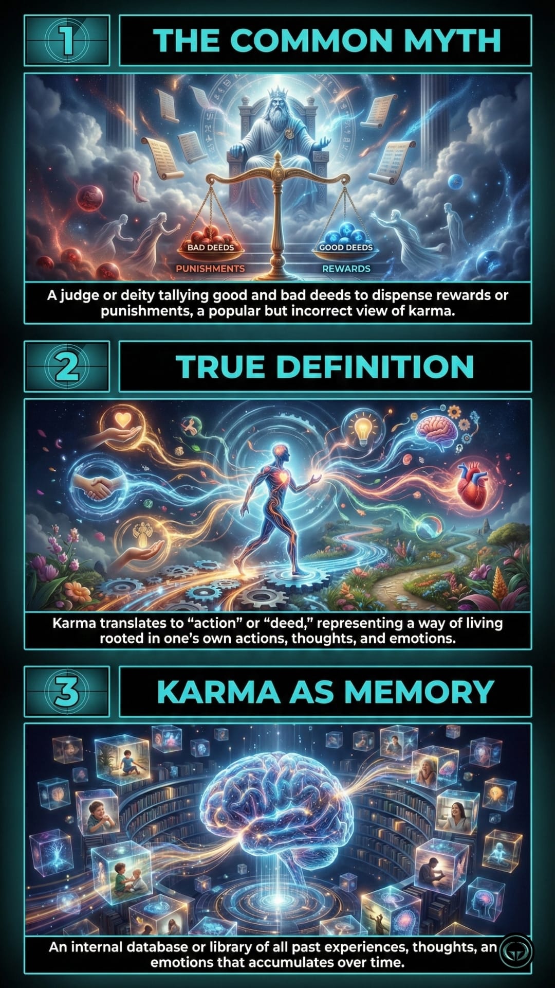 Karma isn't a punishment; it's a mechanism of action. Learn to break the cycle of unconscious patterns. See the visual engineering of the human soul inside.